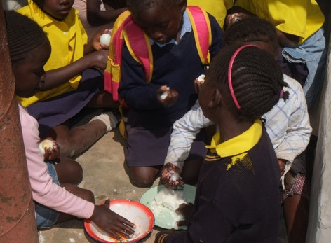 Barnen ville gärna ha nära kontakt med oss. Det var så när man rörde sig ute på skolområdet så kom det en liten hand eller fler som ville ha kontakt och vara med. Eftersom det officiella språket i Zambia är engelska så läser barnen engelska redan tidigt i skolan. Därför går det att prata med nästan alla barn.